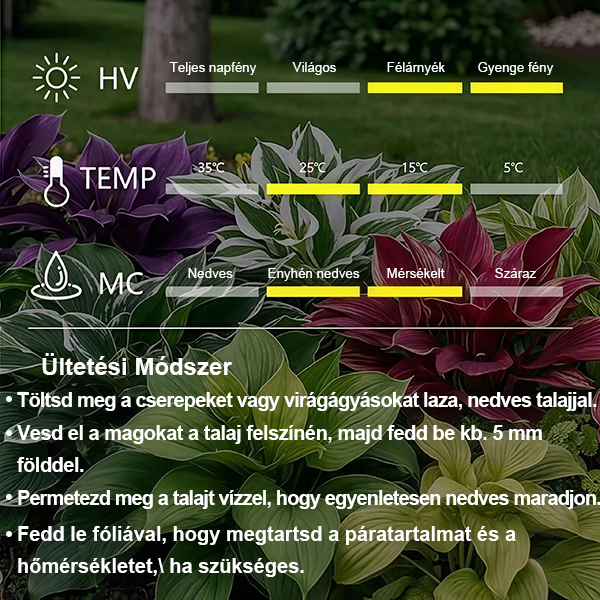 Autentikus, nem génmanipulált hosta magvak az Egyesült Államokból – kifejezetten árnyékos környezethez tervezve, kezdő kertészek számára ideális, fagyálló és évelő! Egyetlen magtól kezdve létrehozhatod saját, legnyugodtabb és legbájosabb kert sarkodat.
